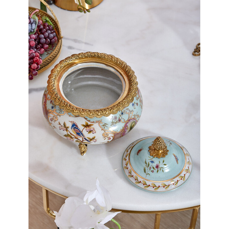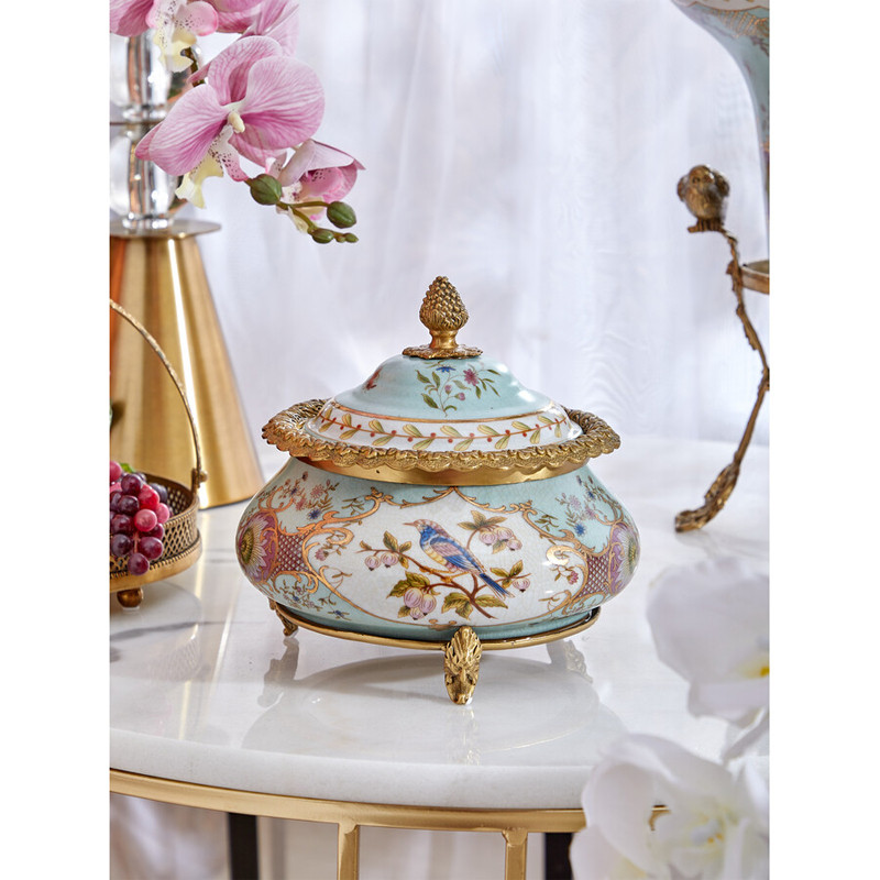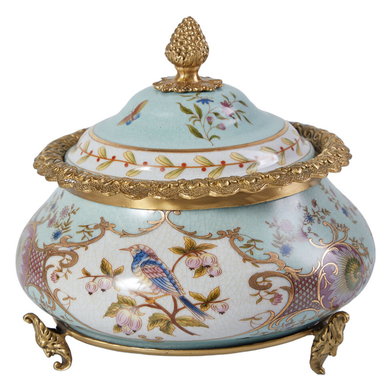 Шкатулка с крышкой из голубого фарфора с риунком птиц и цветов Blue Garden