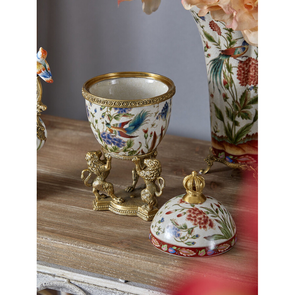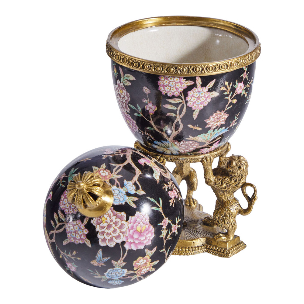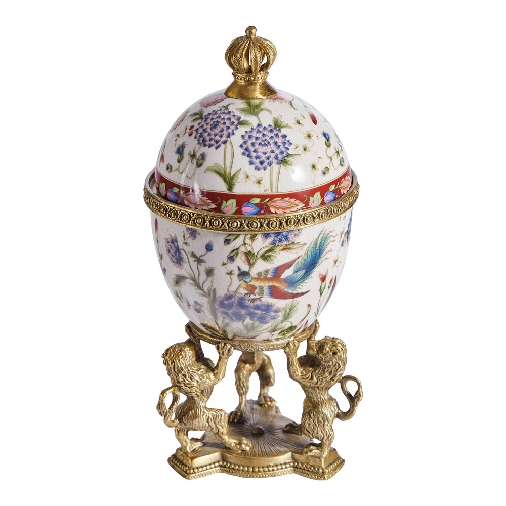 Шкатулка в форме яйца на величественных львах из фарфора с бронзовыми элементами Eden Garden