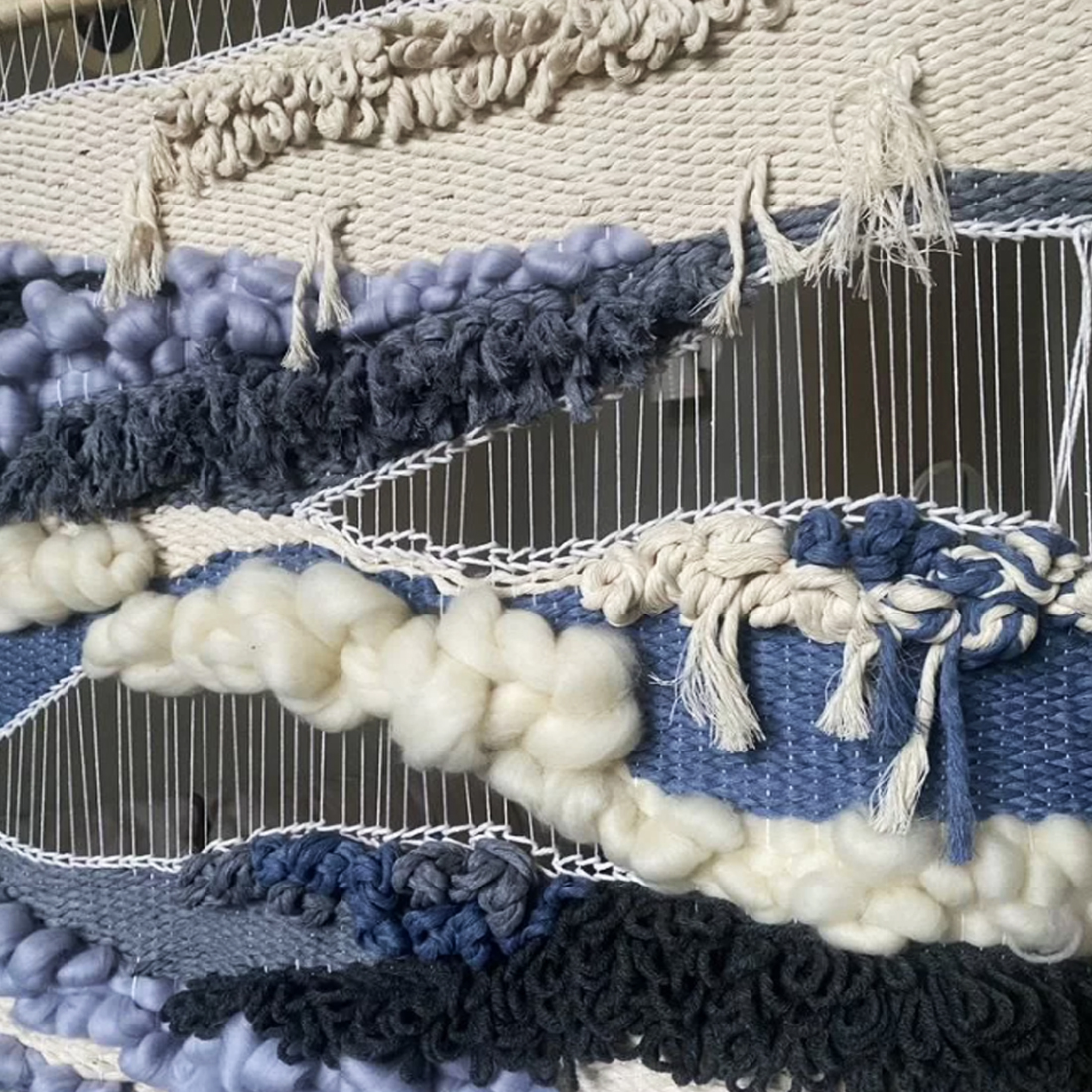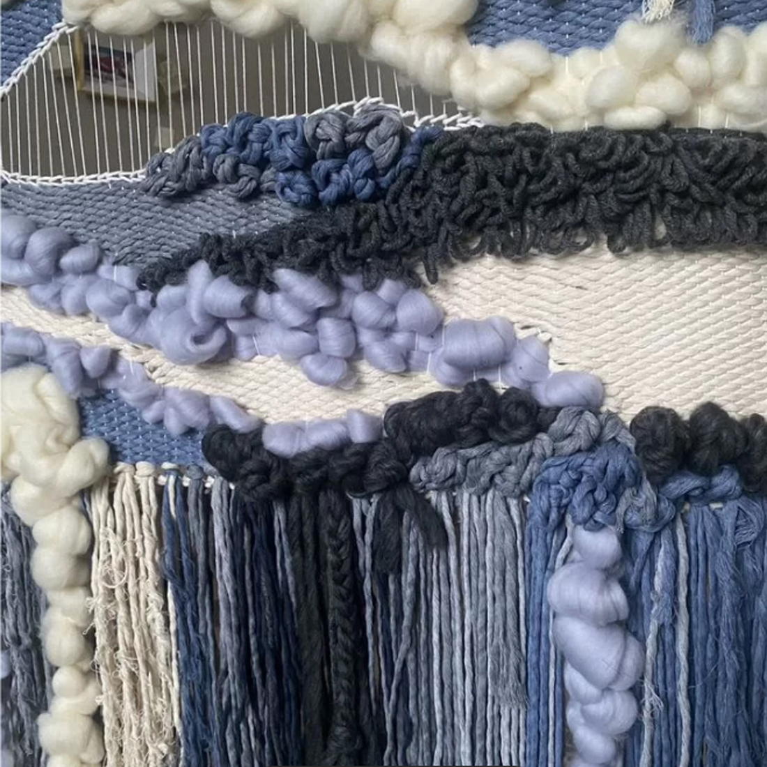 Современное ткачество гобелен в синих оттенках Blue Undine II