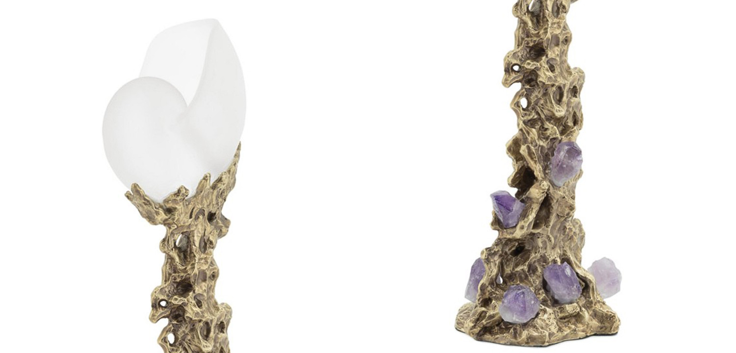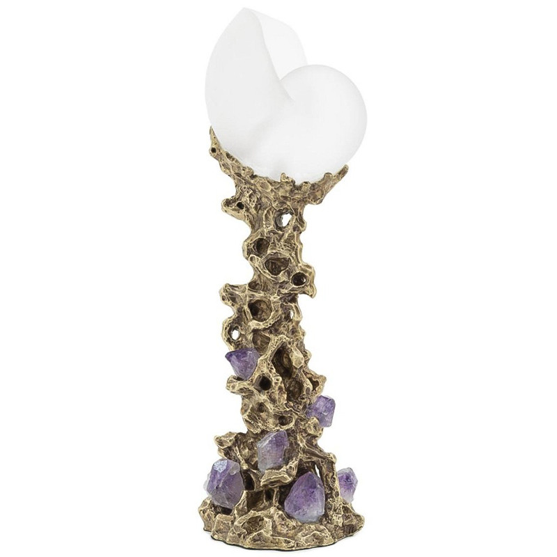 Медная скульптура с матовой стеклянной оболочкой и вставками из натурального аметиста.