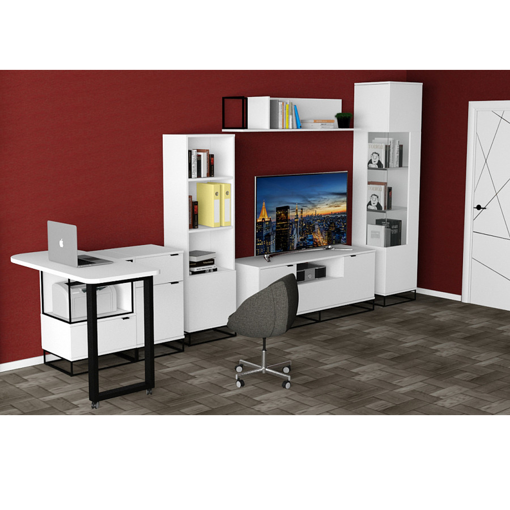 Стеллаж книжный белый с 3-мя открытыми полками и дверкой Strict Lines