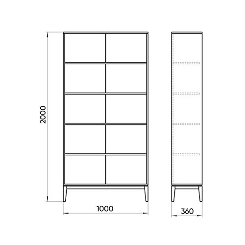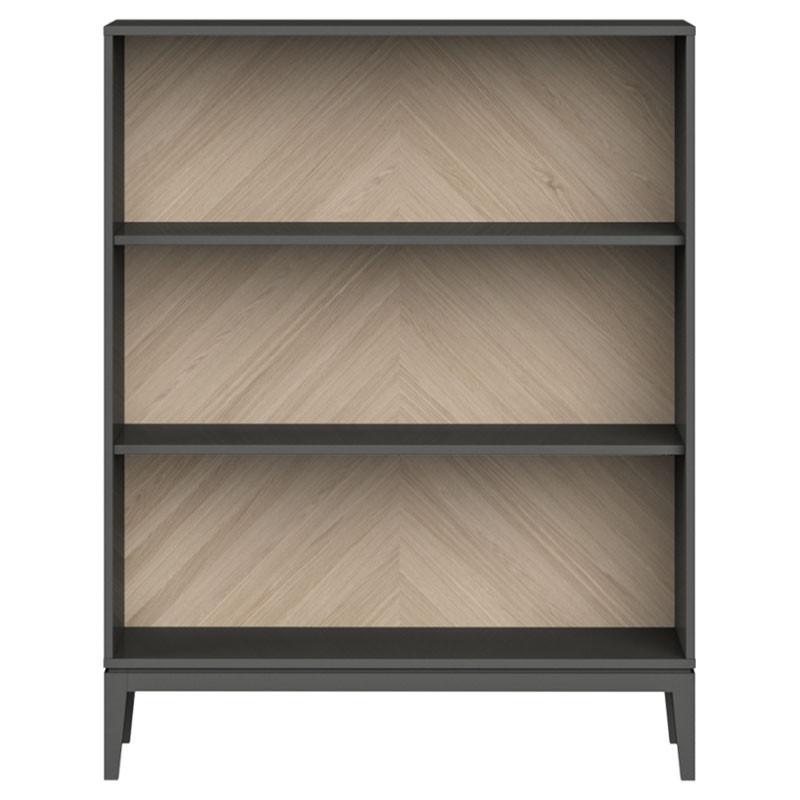 Стеллаж прямой темно-серый с открытыми полками с фасадом из шпона дуба Fjord