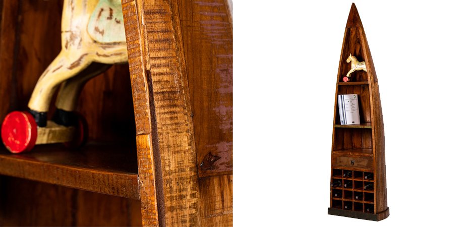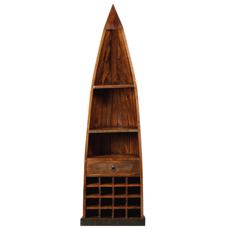Стеллаж изготовлен из антикварной древесины манго и тропической акации.Стеллаж Old Boat Dark для мечтателей, любителей путешествий, может стать хранителем близких сердцу воспоминаний, любимых книг и изысканной винной коллекции.