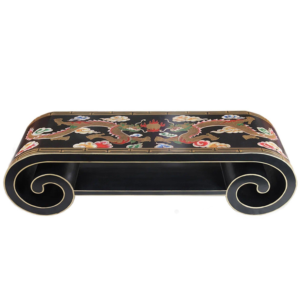 Стол кофейный чёрный в китайском стиле с росписью Chinese Guest