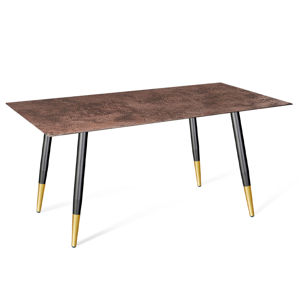 Стол обеденный с коричневой прямоугольной столешницей из керамики на четырех металлических ножках Brown Ceramics