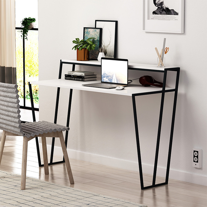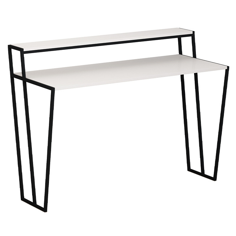 Стол письменный белый с полкой на черных металлических ножках PAL WHITE