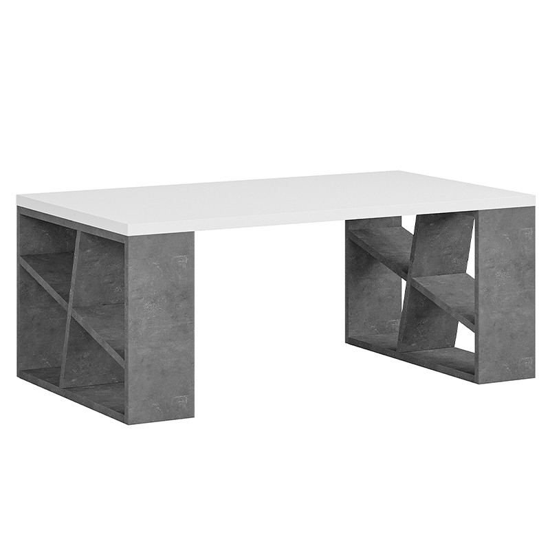 Стол журнальный бело-серый с открытыми полками и прямоугольной столешницей HONEY RETRO GREY