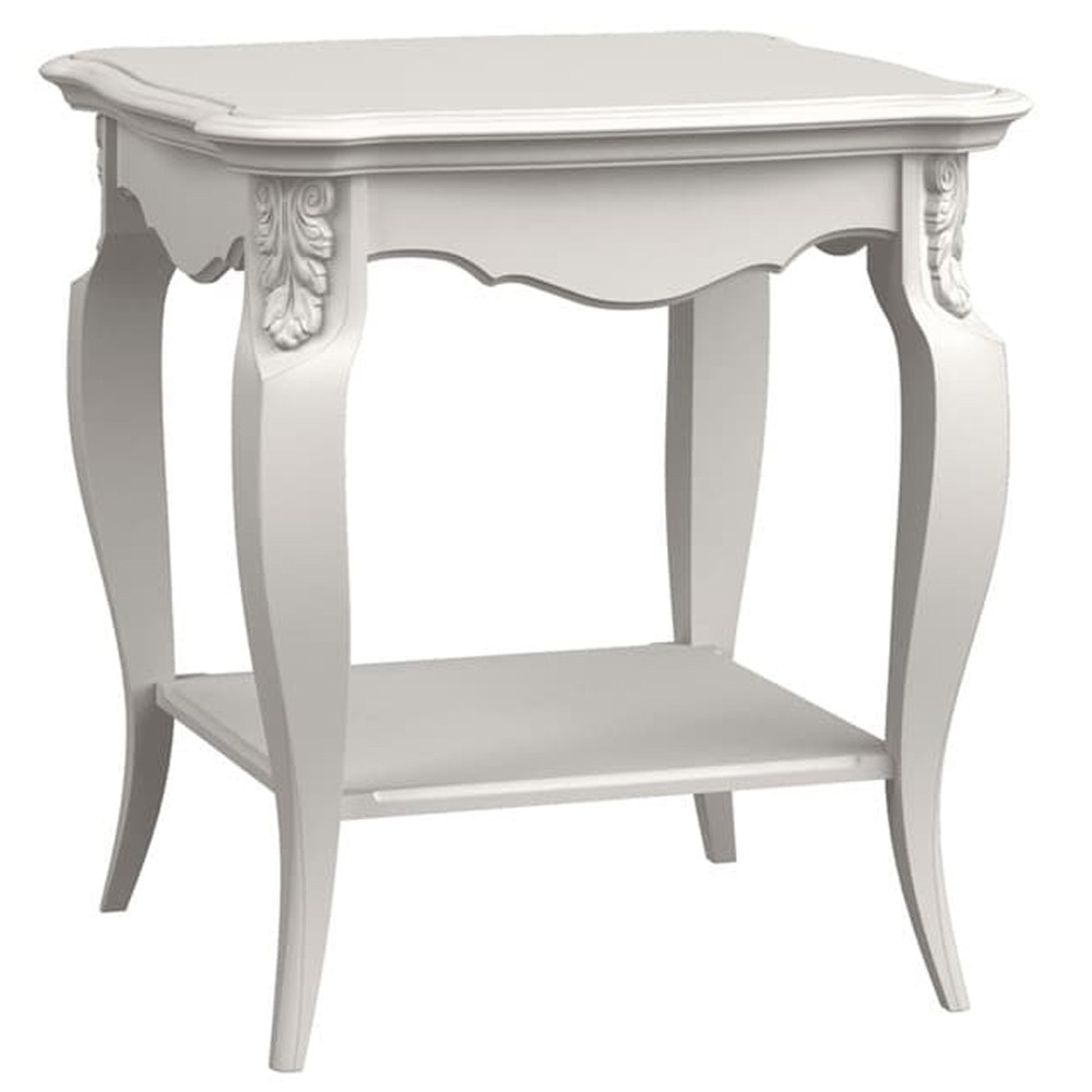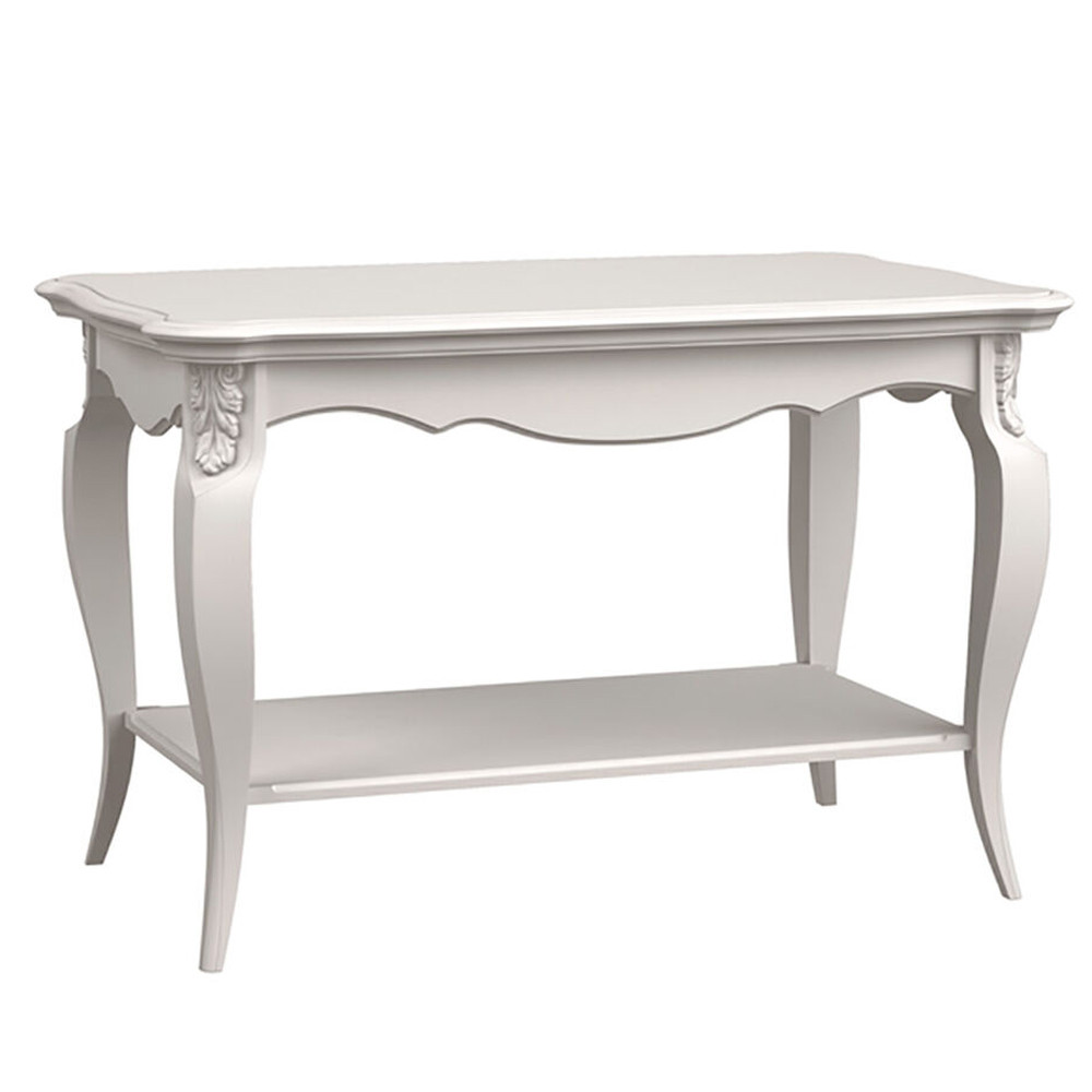 Стол журнальный белый из массива бука с полкой в стиле прованс White Provence
