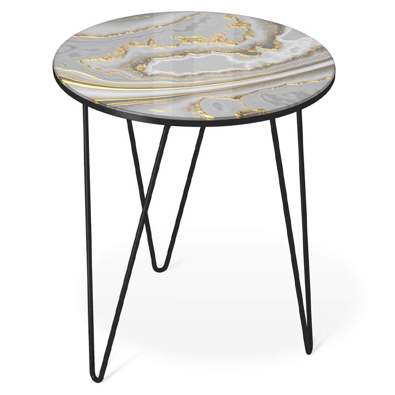 Стол журнальный c круглой столешницей из стекла серого цвета Gray and Gold Marble