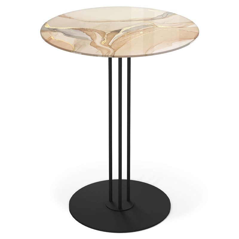 Стол журнальный круглый с бежевой столешницей из стекла Beige Marble