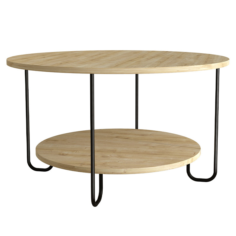 Стол журнальный с круглой деревянной столешницей и полкой CORRO OAK