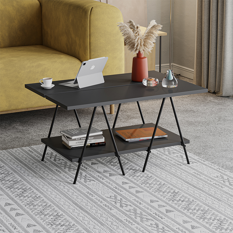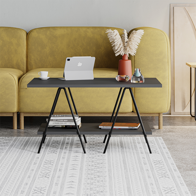 Стол журнальный с прямоугольной столешницей и полкой цвета антрацит ESSEL ANTHRACITE