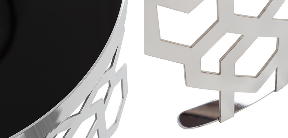 Yen Geometry Table Chromium сделан из стекла и нержавеющей стали, а его толщина составляет 8 мм.
