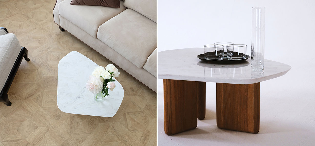 Позвольте себе купить столик кофейный белая столешница Duncan, чтобы создать уютное место для отдыха.