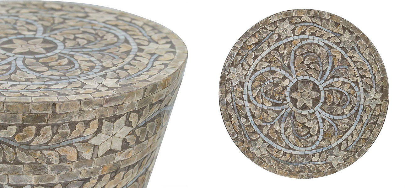 Купить столик круглый с инкрустацией мозаика цветы Zoe – можно как элемент для разных пространств квартиры: