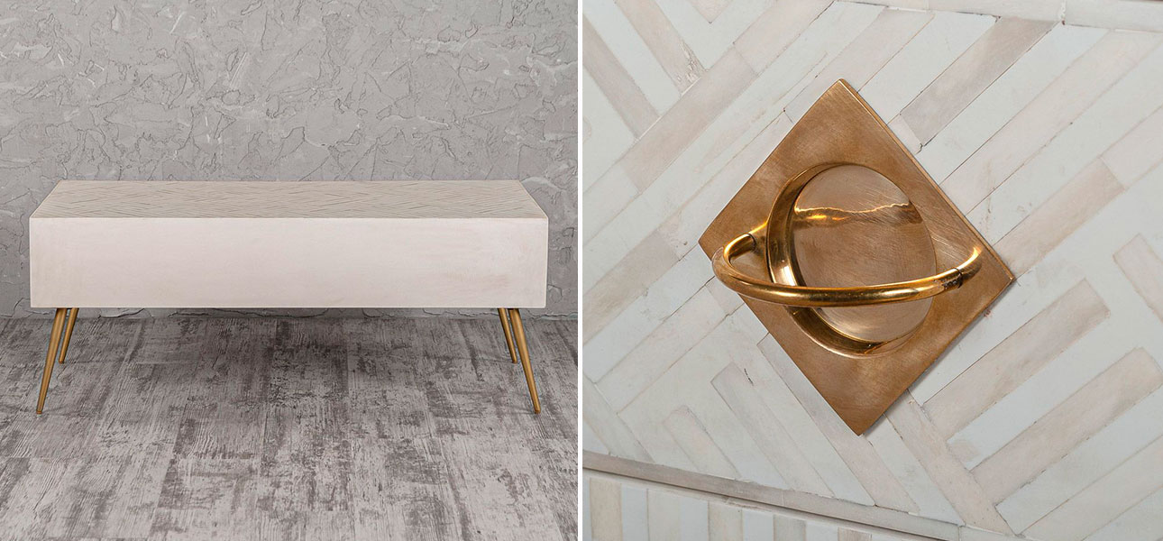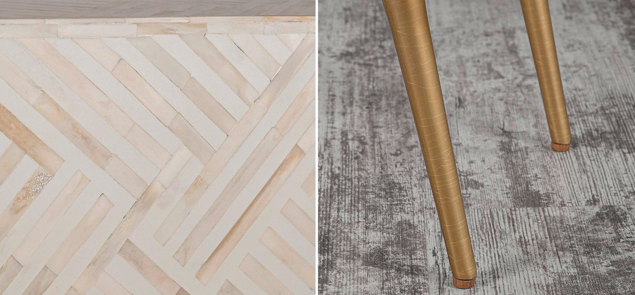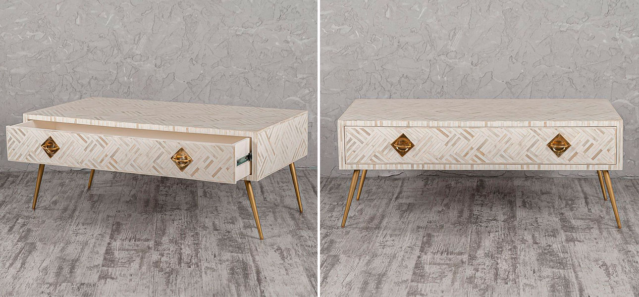 Если купить столик на ножках с инкрустацией белый Chloe, его можно вписать в качестве декоративного элемента в гостиной, спальне или кабинете.