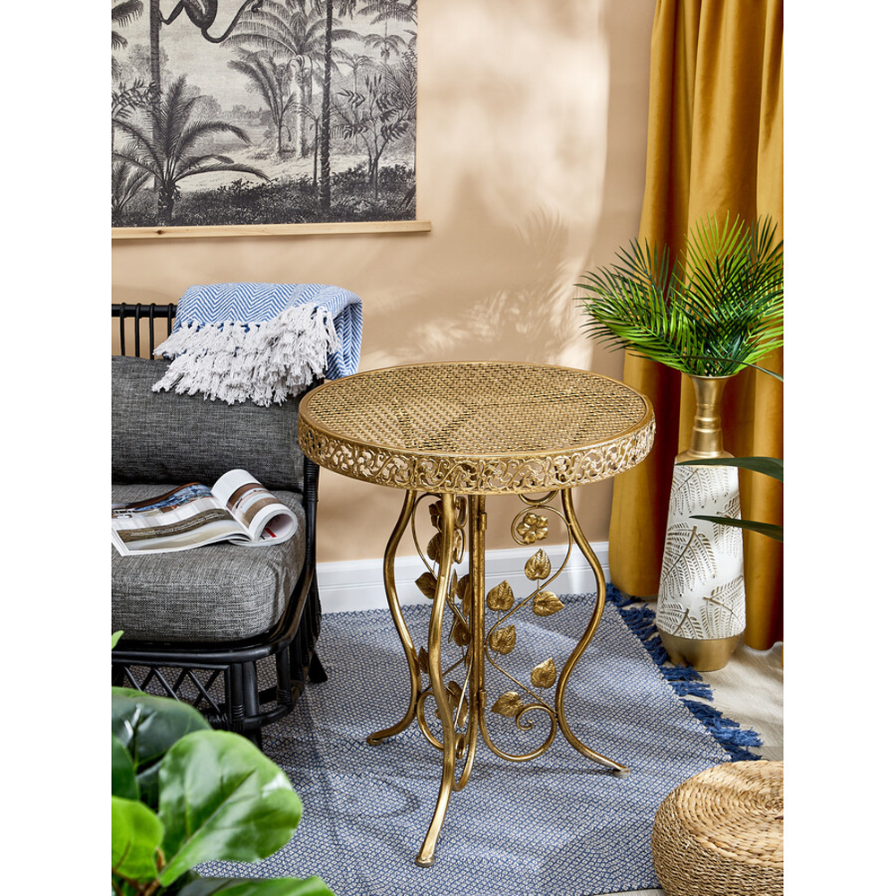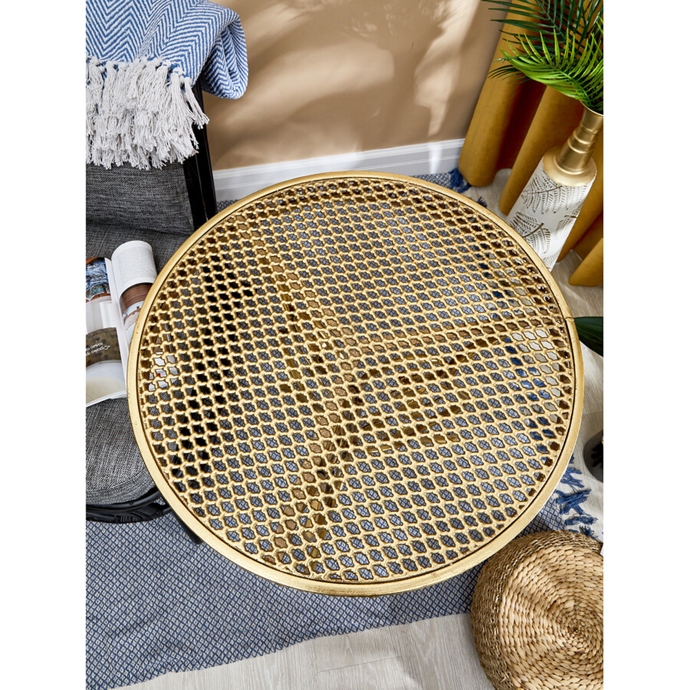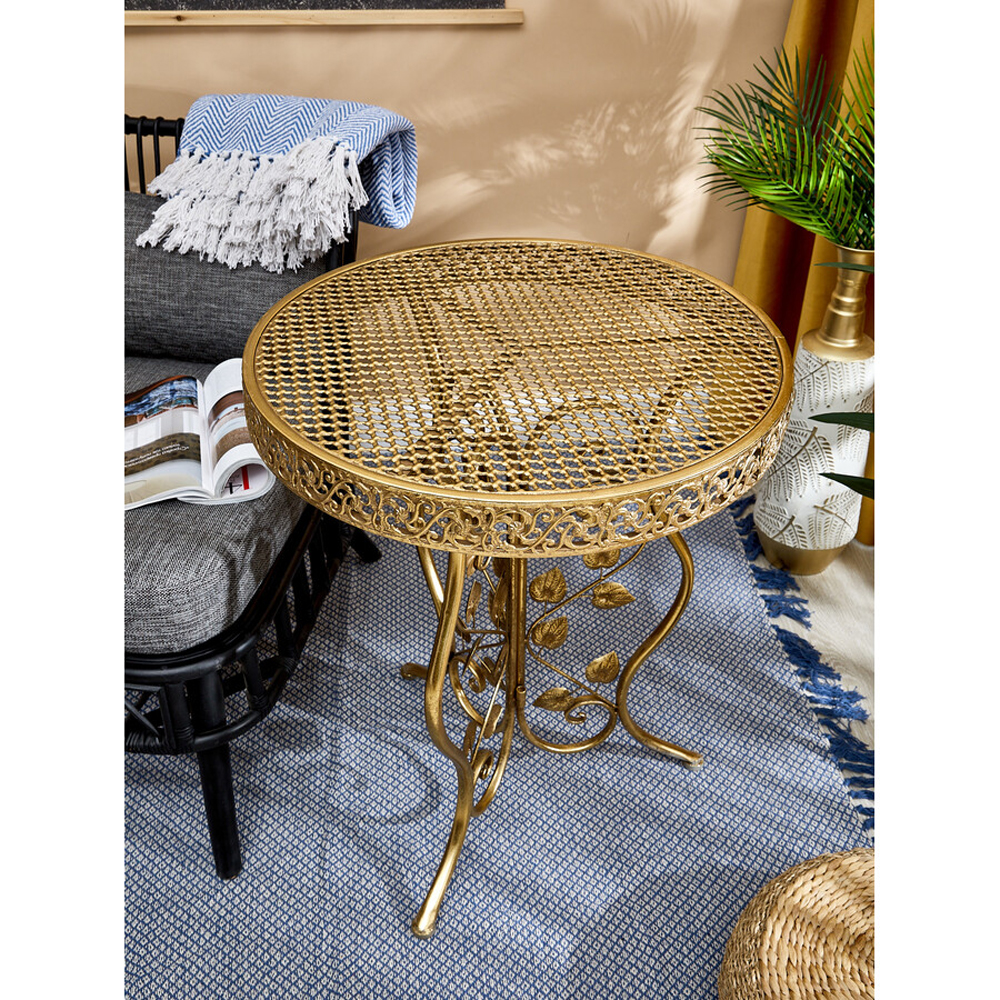 Столик приставной золотистый с орнаментом на столешнице Tanzania