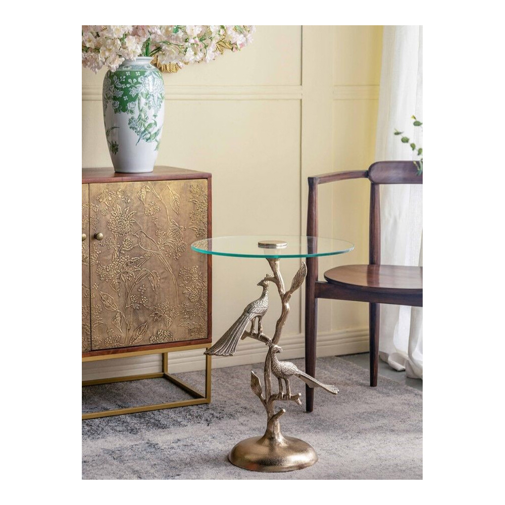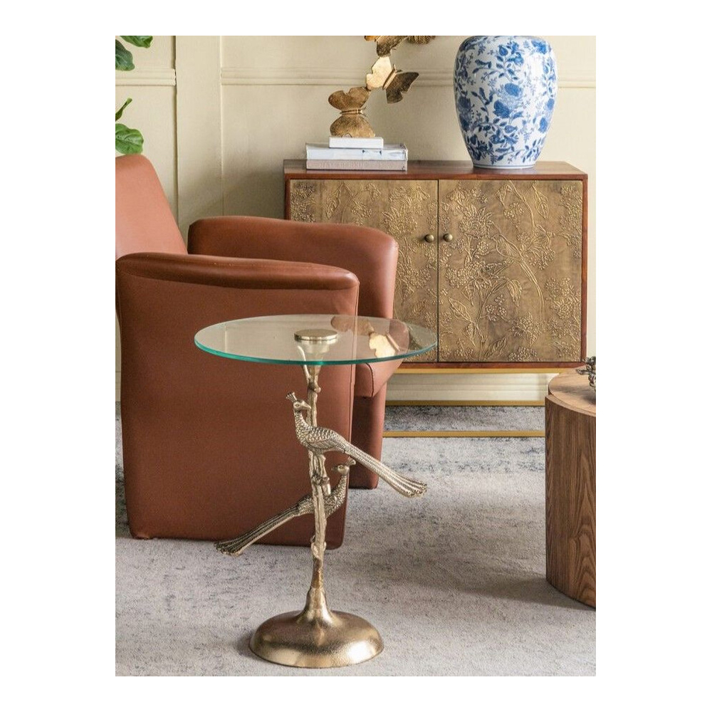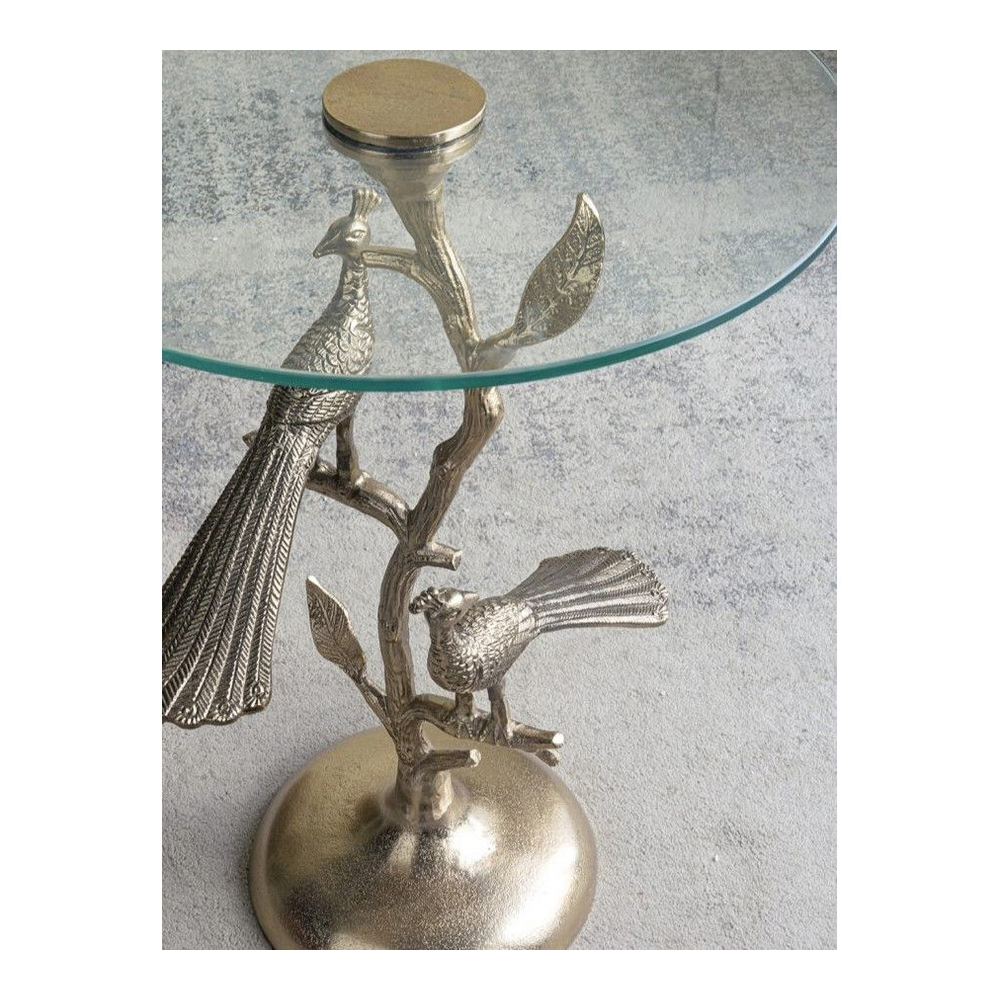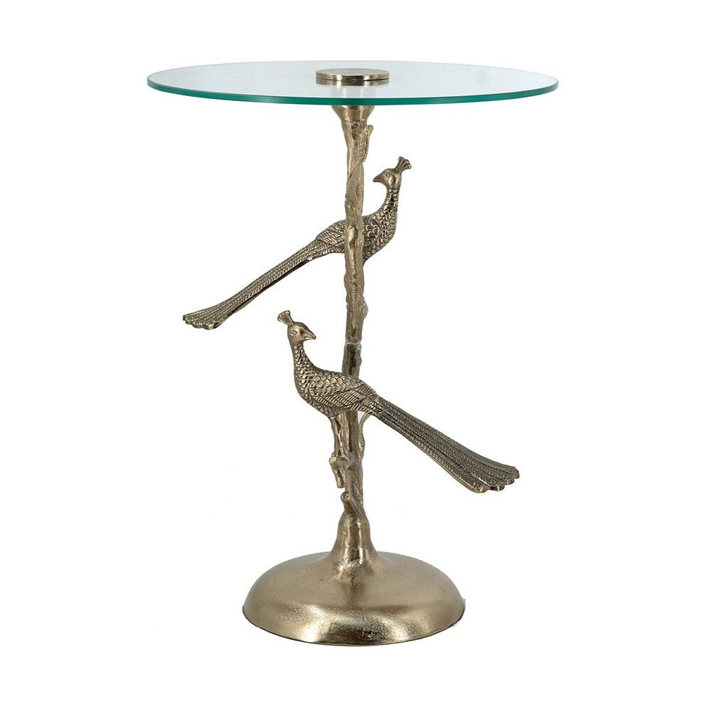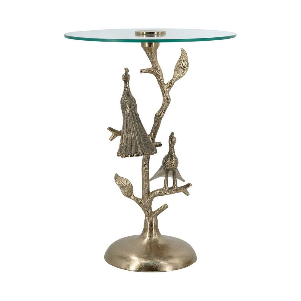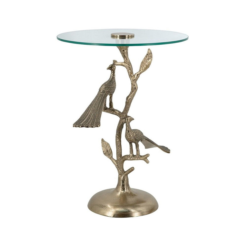 Столик с круглой стеклянной столешницей и корпусом в виде двух павлинов на ветке Table Two Peacocks