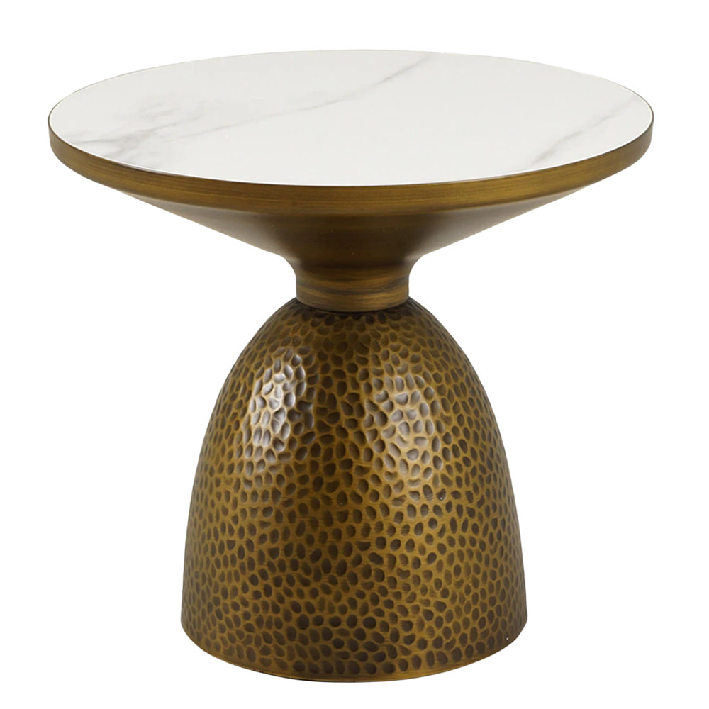 Столик журнальный с круглой белой столешницей на фактурном основании Hourglass