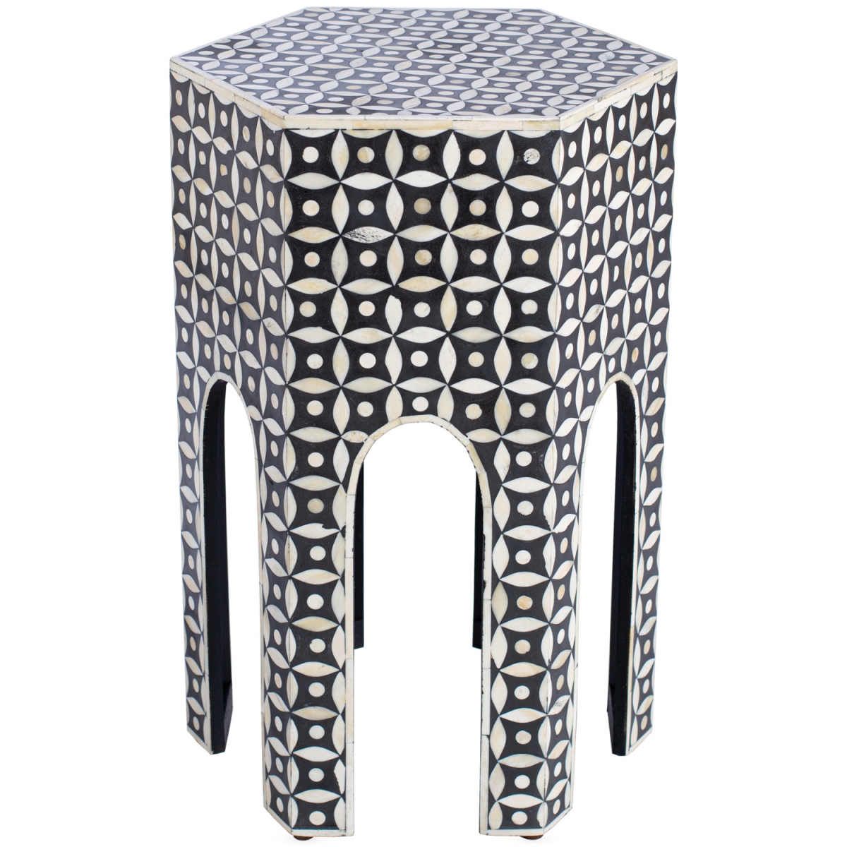 Столик с отделкой из кости верблюда – выполнен в оригинальном шестиугольном дизайне и станет стильным акцентом для вашего интерьера.