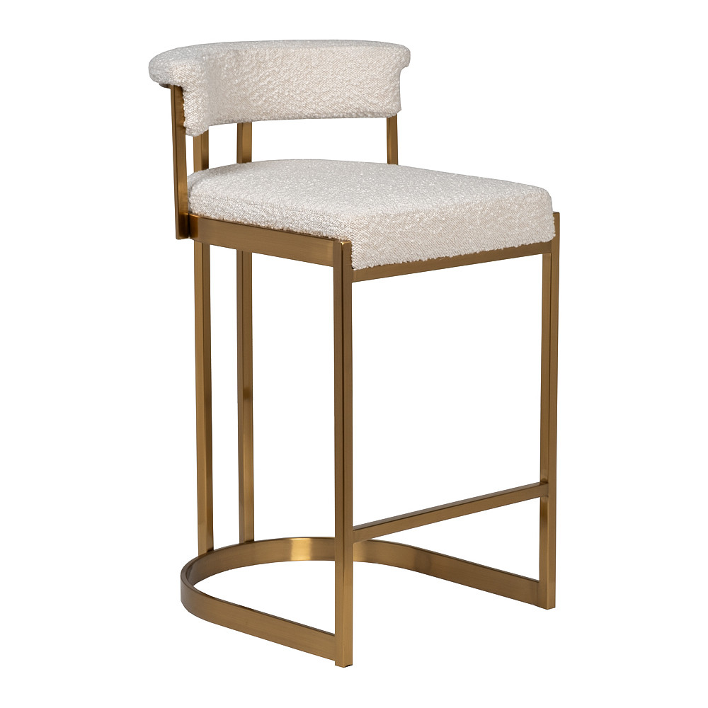 Стул барный букле бежевый с каркасом цвета матовое золото Tactility