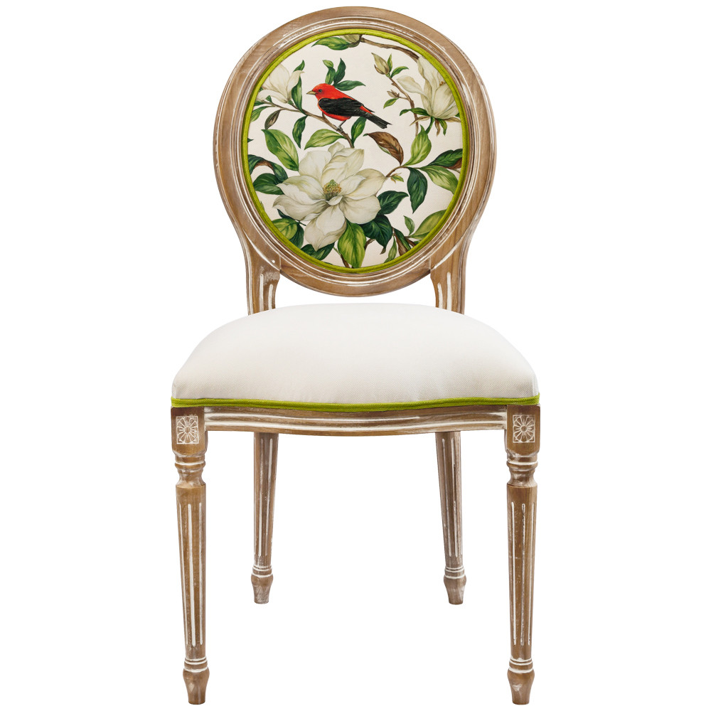 Стул бежевый из натурального бука с изображением птиц и цветов Blooming Red Birds