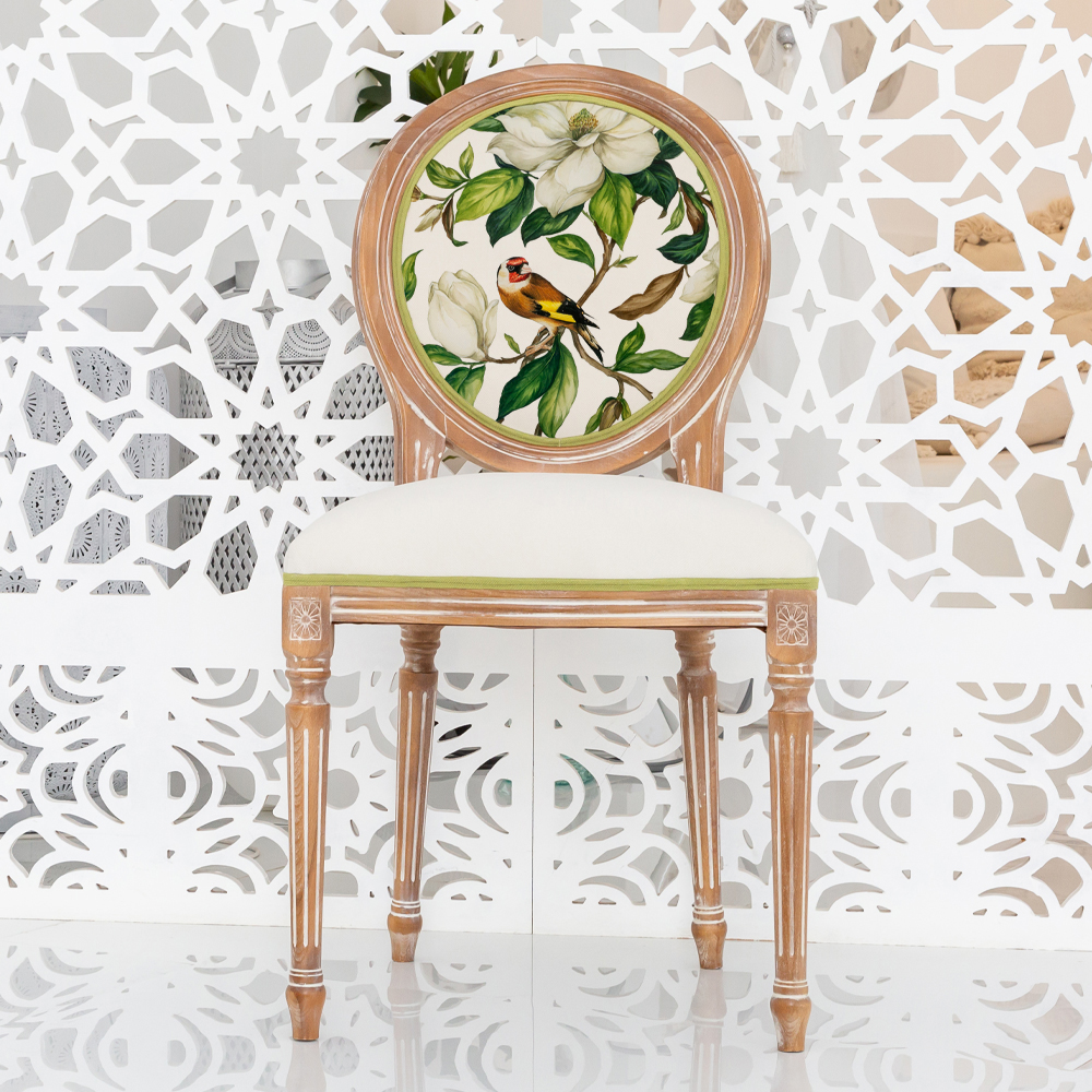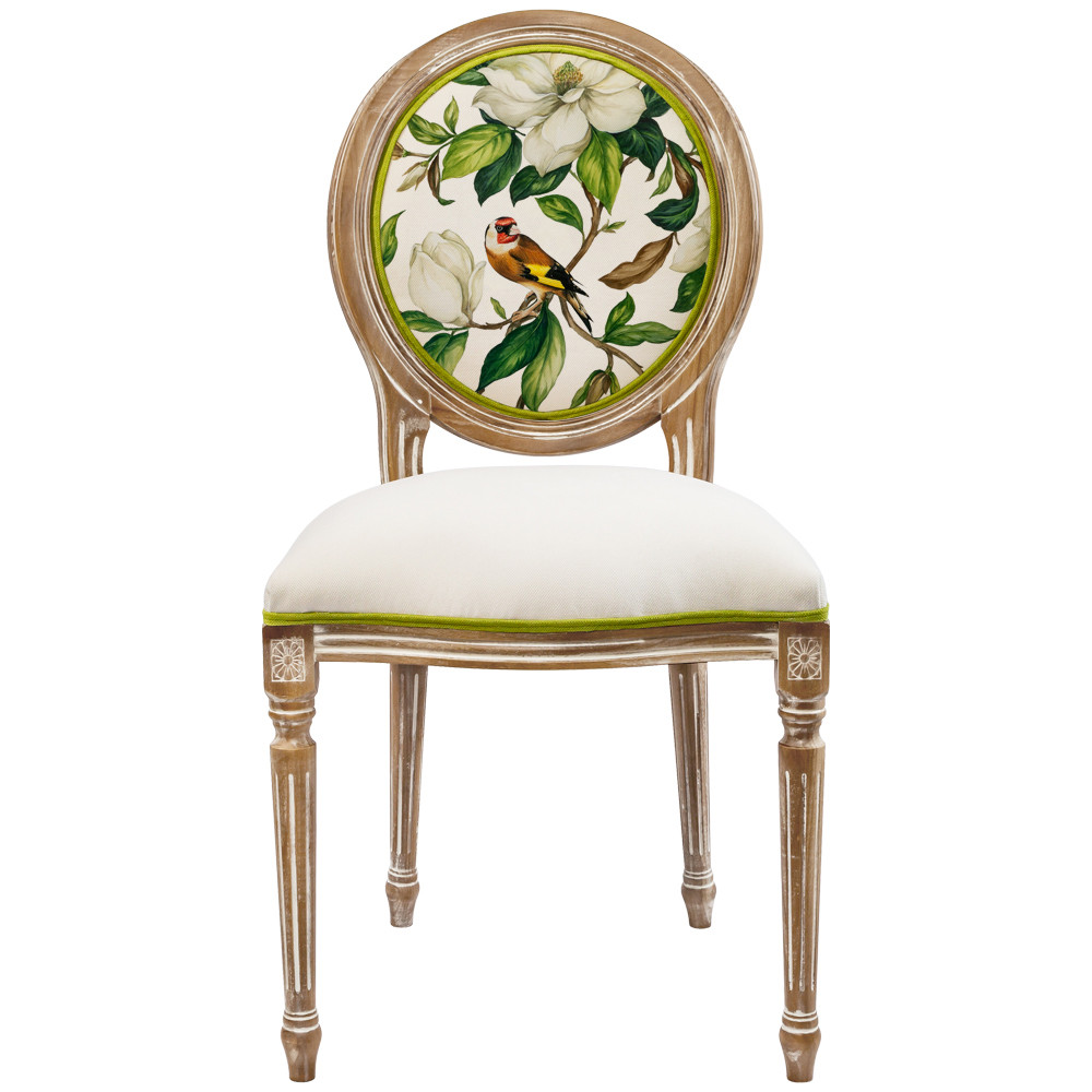 Стул бежевый из натурального бука с изображением птицы в саду Blooming Colored Birds