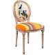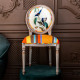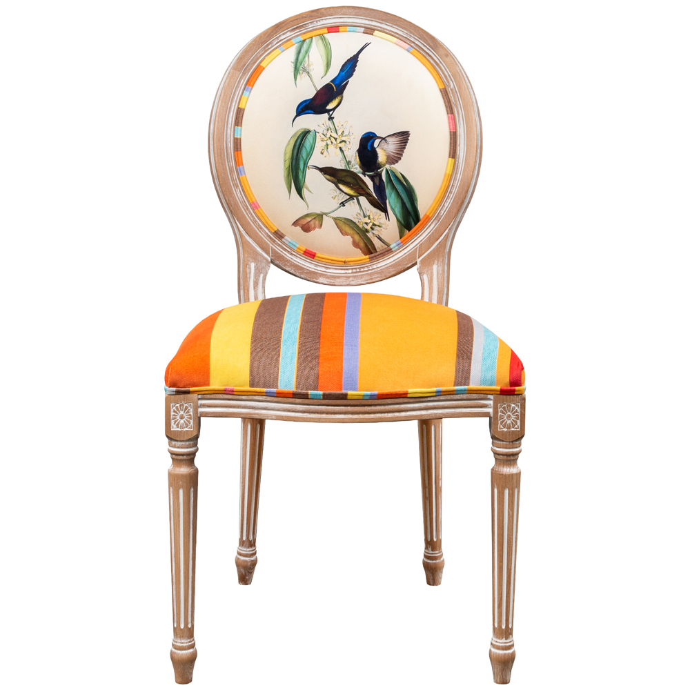 Стул бежевый в разноцветную полоску из натурального бука с изображением птиц и цветов Blooming Blue Birds Colorful Stripes Chair