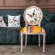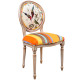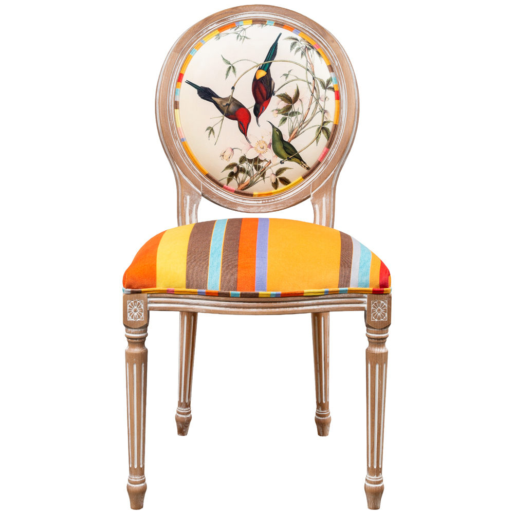 Стул бежевый в разноцветную полоску из натурального бука с изображением птиц и цветов Blooming Red Birds Colorful Stripes Chair