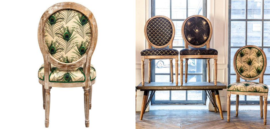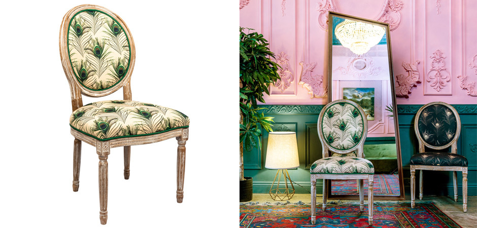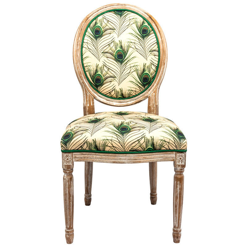 Принт “Перо павлина” добавляет стулу особый шарм и делает его уникальным. Этот рисунок выполнен в ярких и насыщенных цветах, что создает ощущение праздника и радости.