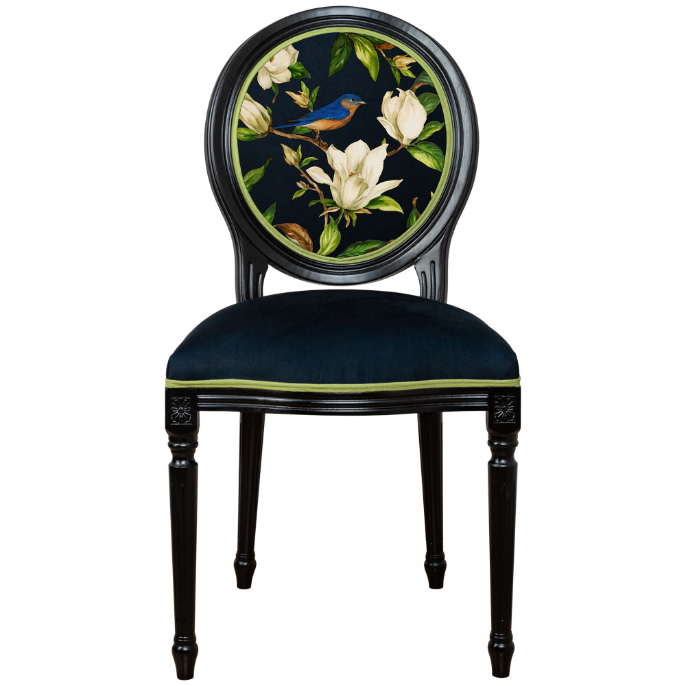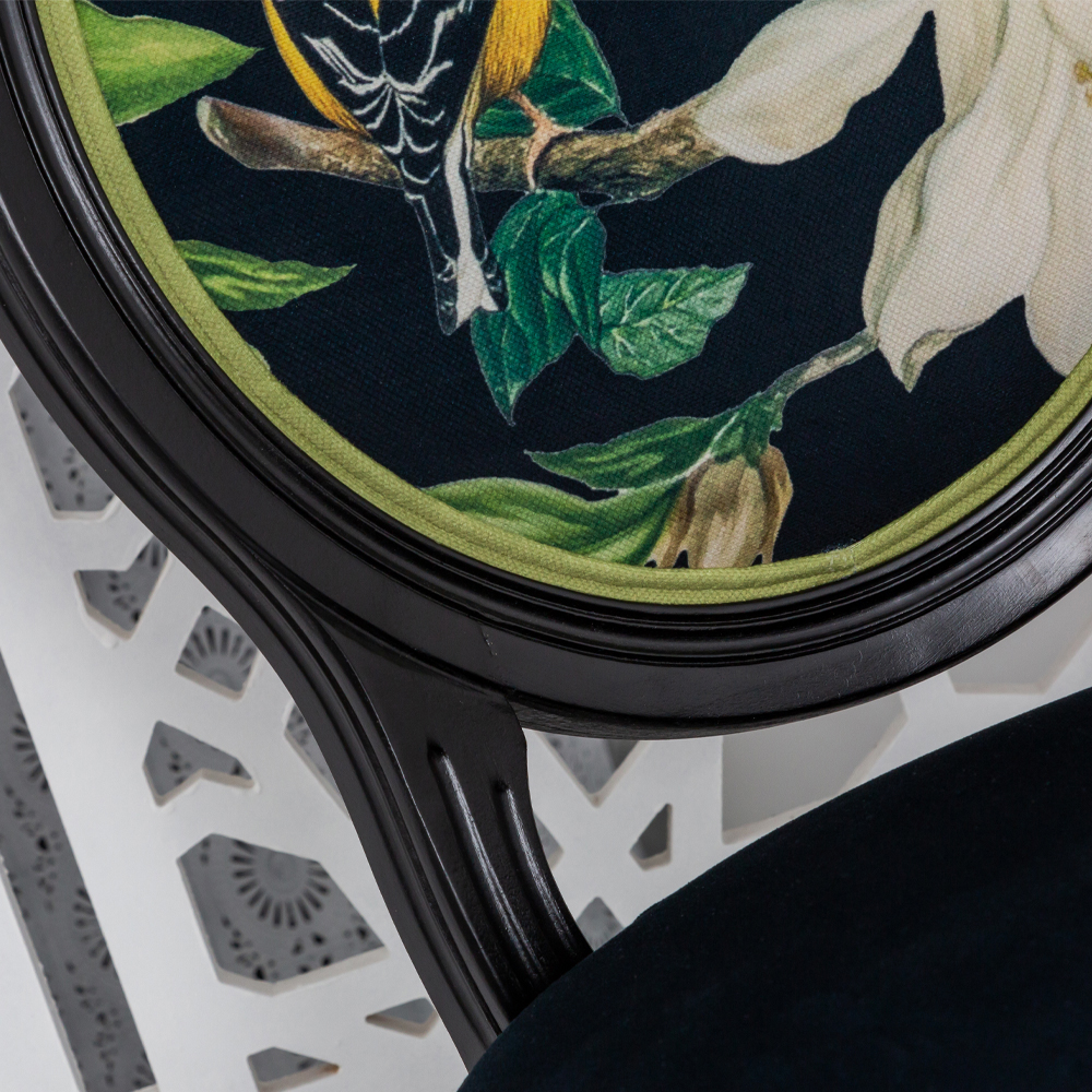 Стул чёрный из натурального бука с изображением птица в саду Blooming Magnolias