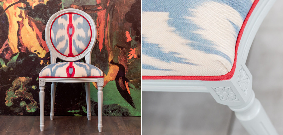 – Стул выполнен в современном стиле и имеет уникальный узор Ikat.
