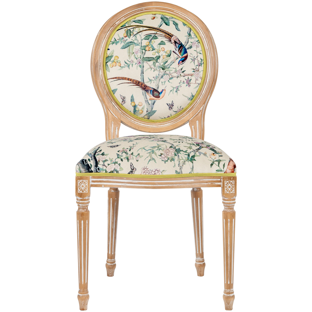 Стул из массива бука бежевый с изображением птиц и цветов Beige Green Chinoiserie Birds Garden Chair