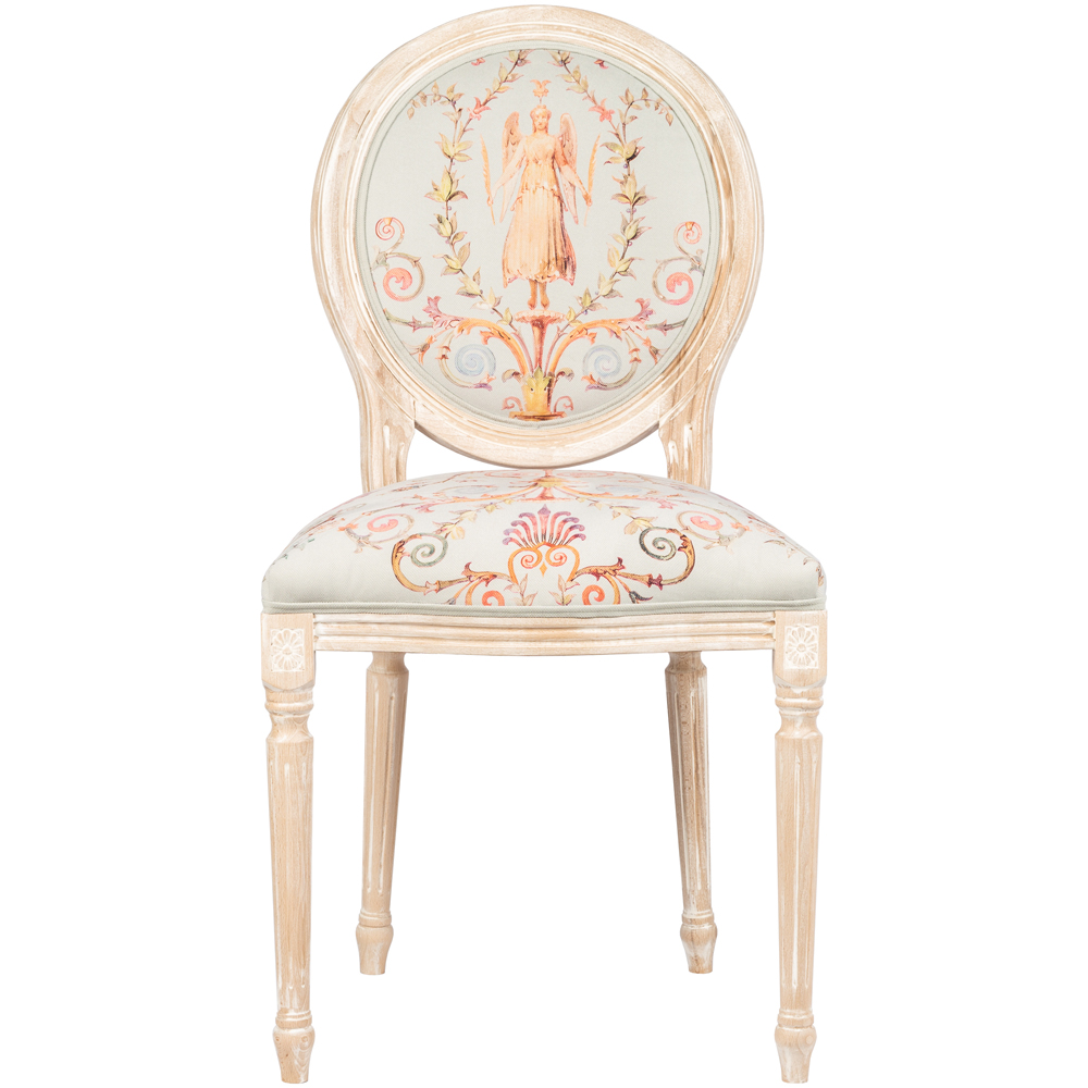 Стул из массива бука светло-серый с растительным орнаментом Raffael Angel Grey Chair