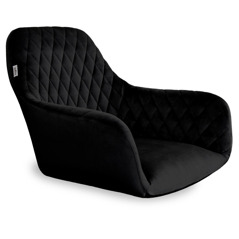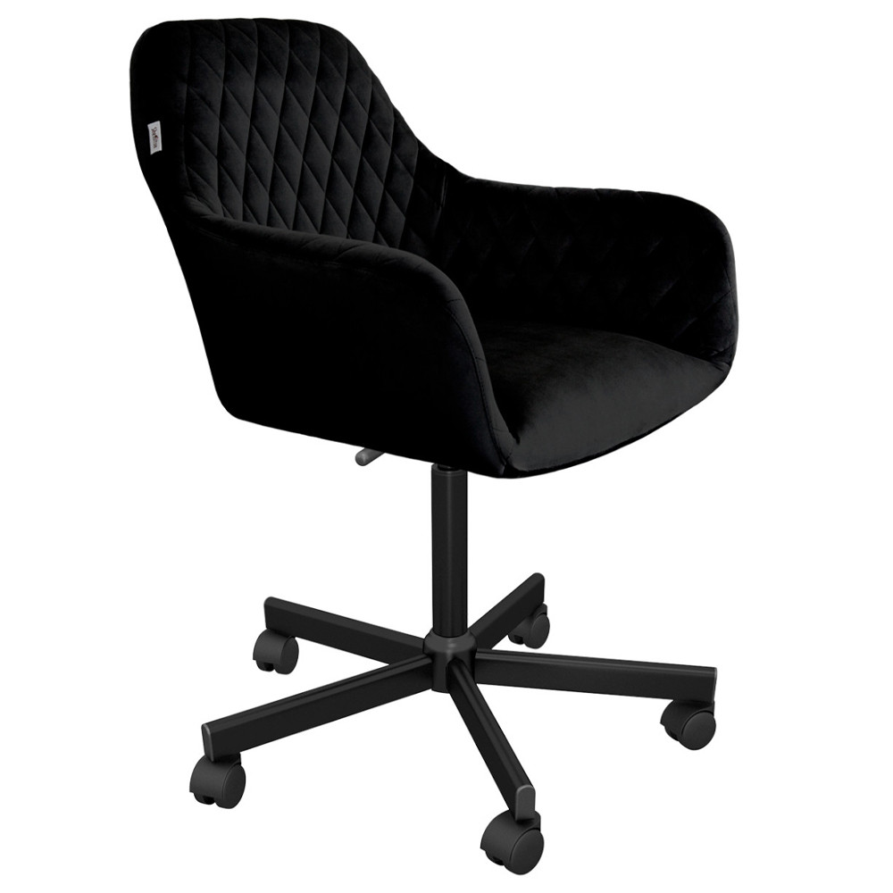 Стул с мягкой черной обивкой из велюра и подъемно-поворотным механизмом на колесиках Harper Black