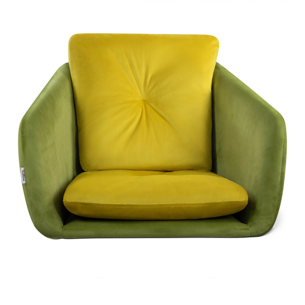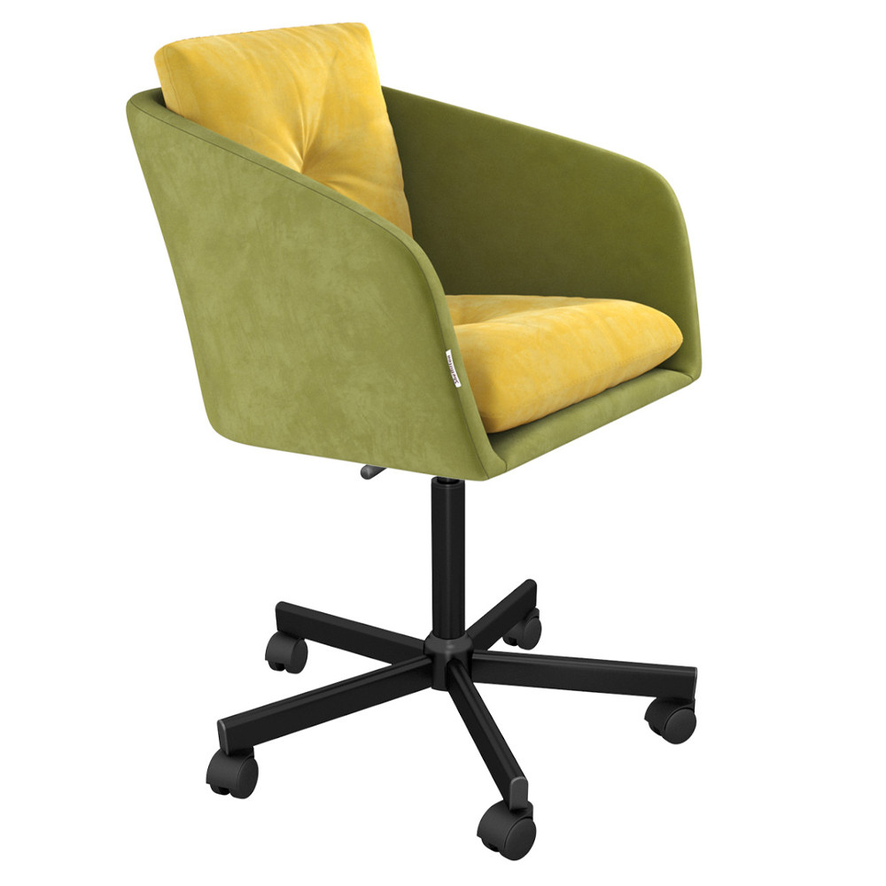 Стул с мягкой обивкой из велюра и подъемно-поворотным механизмом на колесиках Mason Green and Yellow