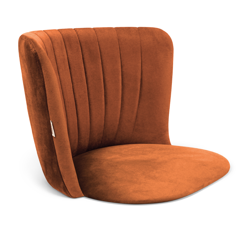 Стул с мягкой оранжевой обивкой из велюра и подъемно-поворотным механизмом на черных колесиках Harper Orange