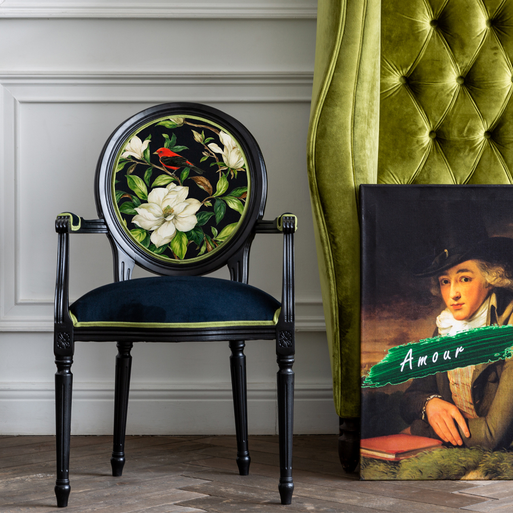 Стул с подлокотниками из бука с изображением птиц и цветов Blooming Birds