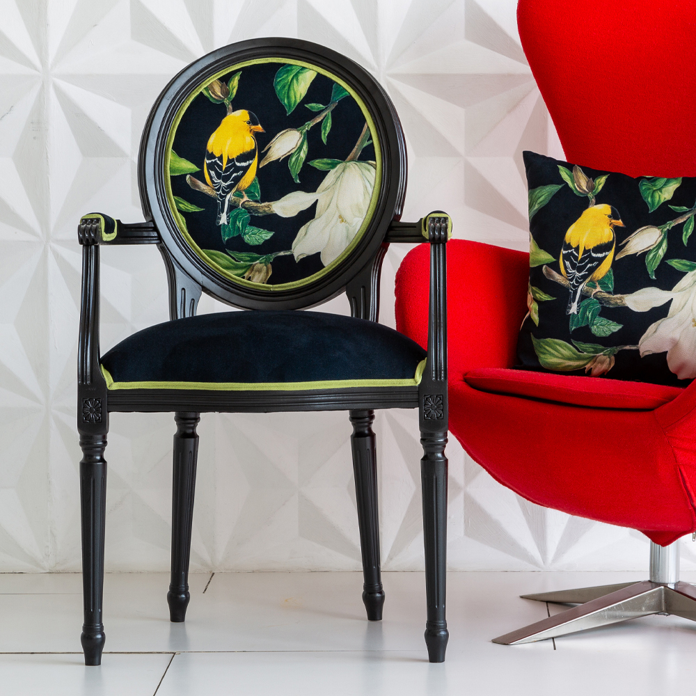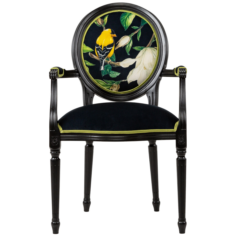 Стул с подлокотниками из натурального бука с изображением птицы и цветов Blooming Birds