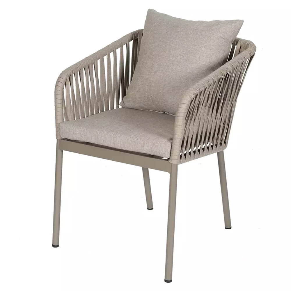 Стул серо-бежевый с декоративным плетением на спинке и подлокотниках Chair Weave