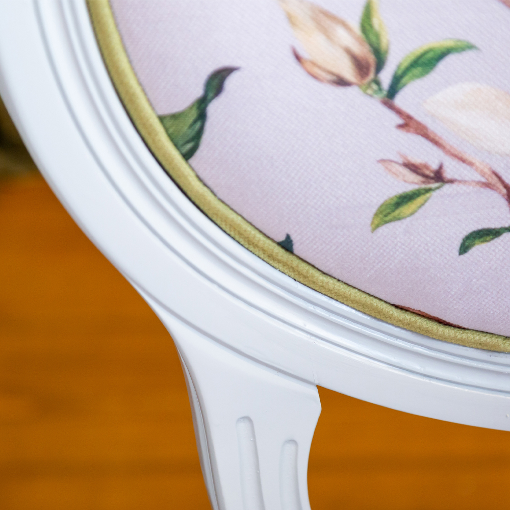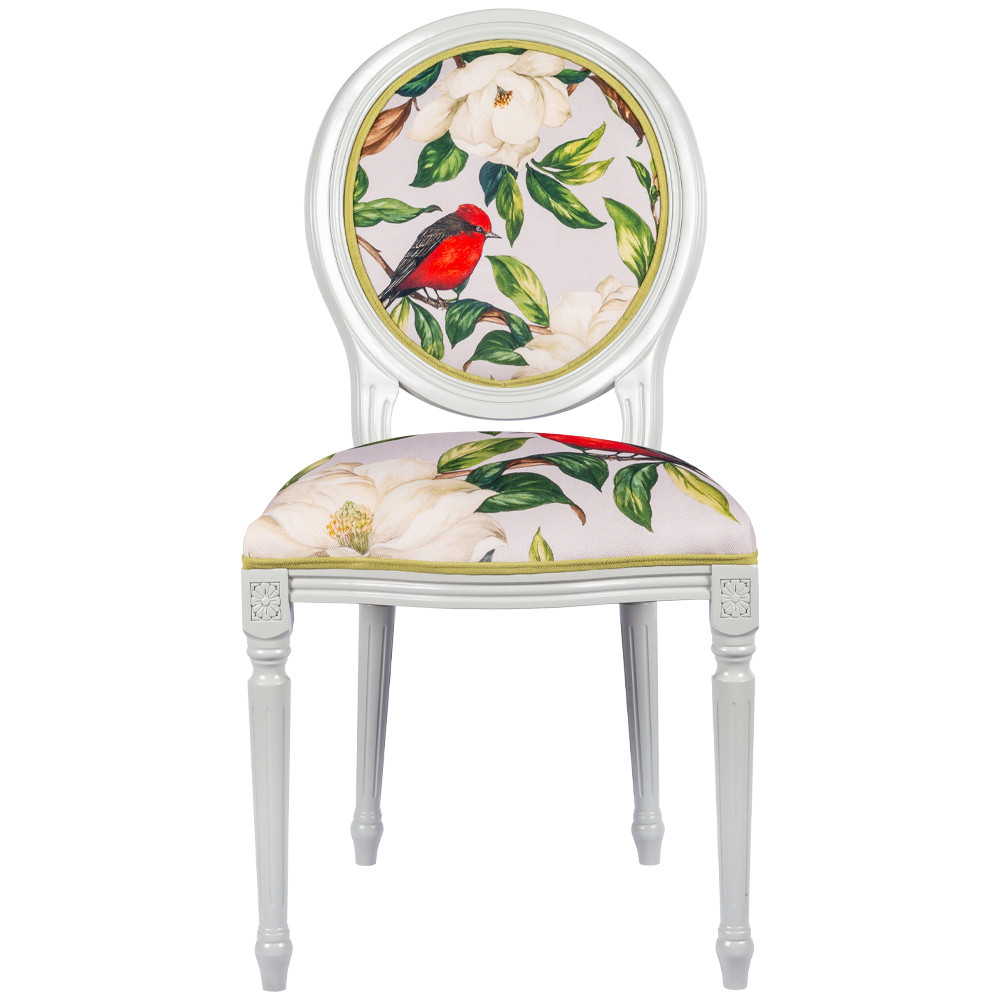 Стул светло-серый из натурального бука с изображением птиц и цветов Blooming Birds Red