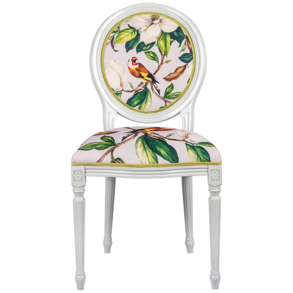 Стул светло-серый из натурального бука с изображением птицы в саду Blooming Colored Birds