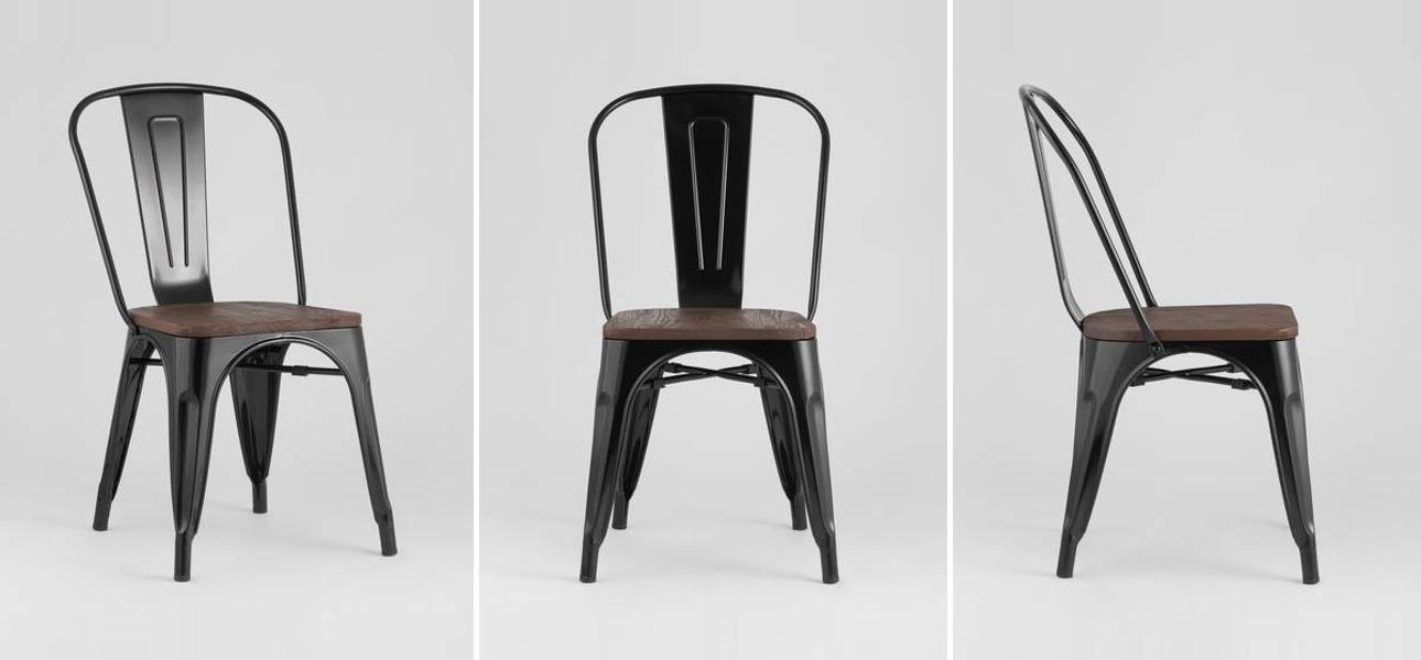 Купить стул Tolix Глянцевый Черный Металл Деревянное Сидение – это выбрать его за: