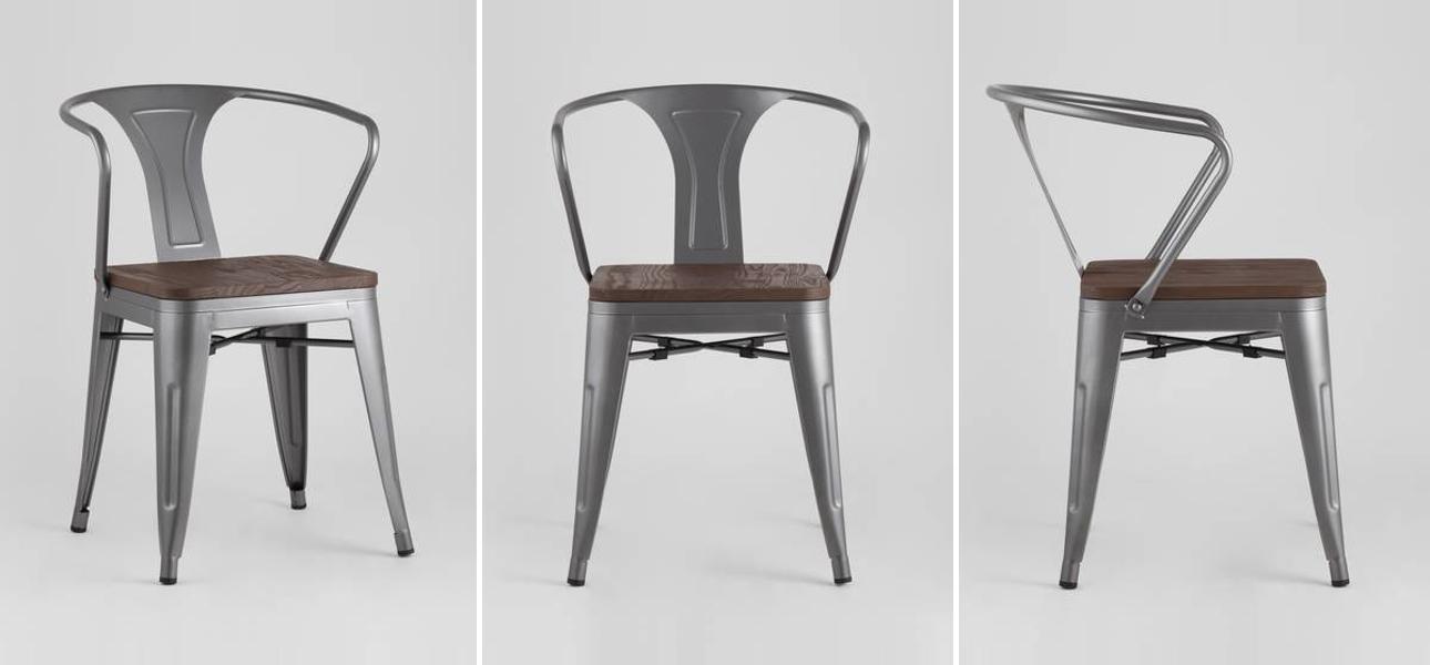 Купить стул Tolix с подлокотниками Серебристый Металлик Деревянное Сидение – это выбрать его за: