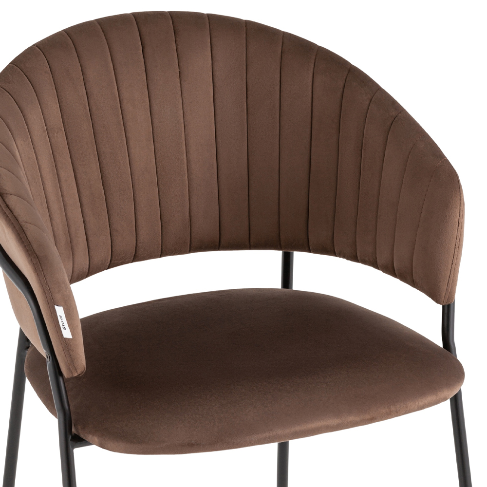Велюровая обивка стула создает атмосферу роскоши и изыска, раскрывая свои мягкие и уютные текстуры. Коричневый цвет оттеняет эту элегантность, придает стулу естественность и теплоту.
