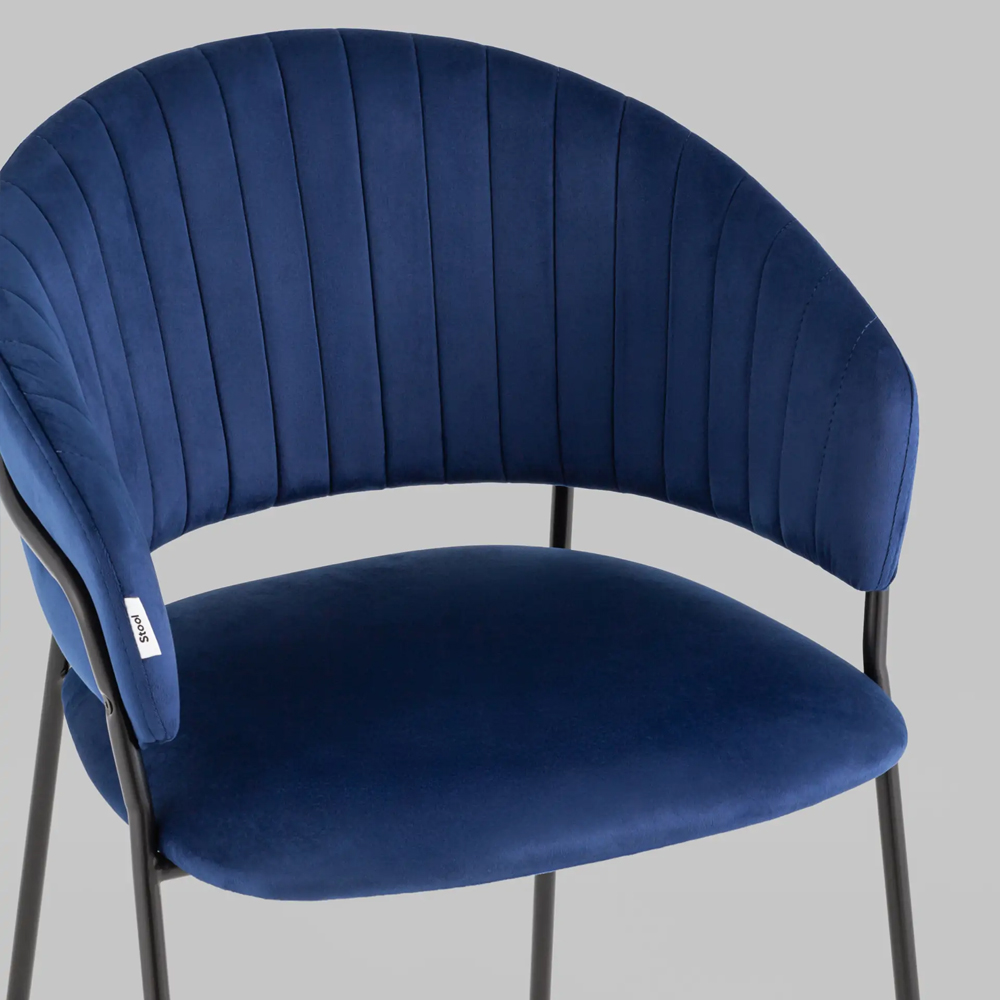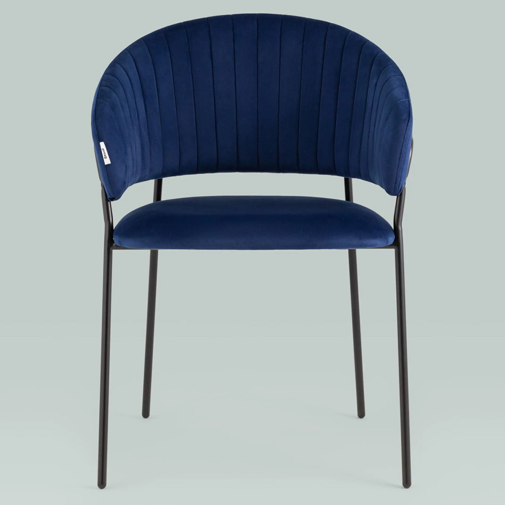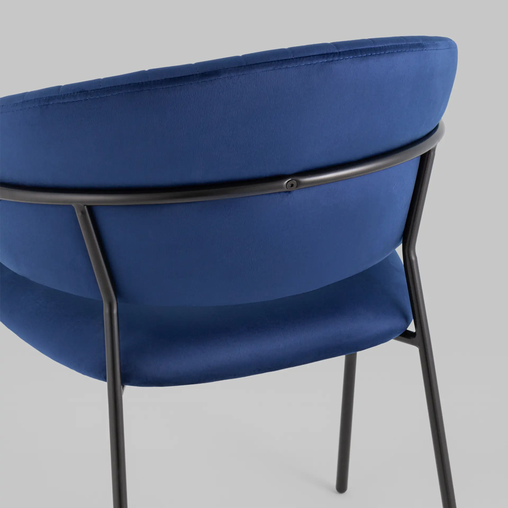 К тому же, стоит купить стул в велюре синего цвета Horizon за его металлический каркас, который красиво огибает спинку и выступает аккуратным акцентом модели.