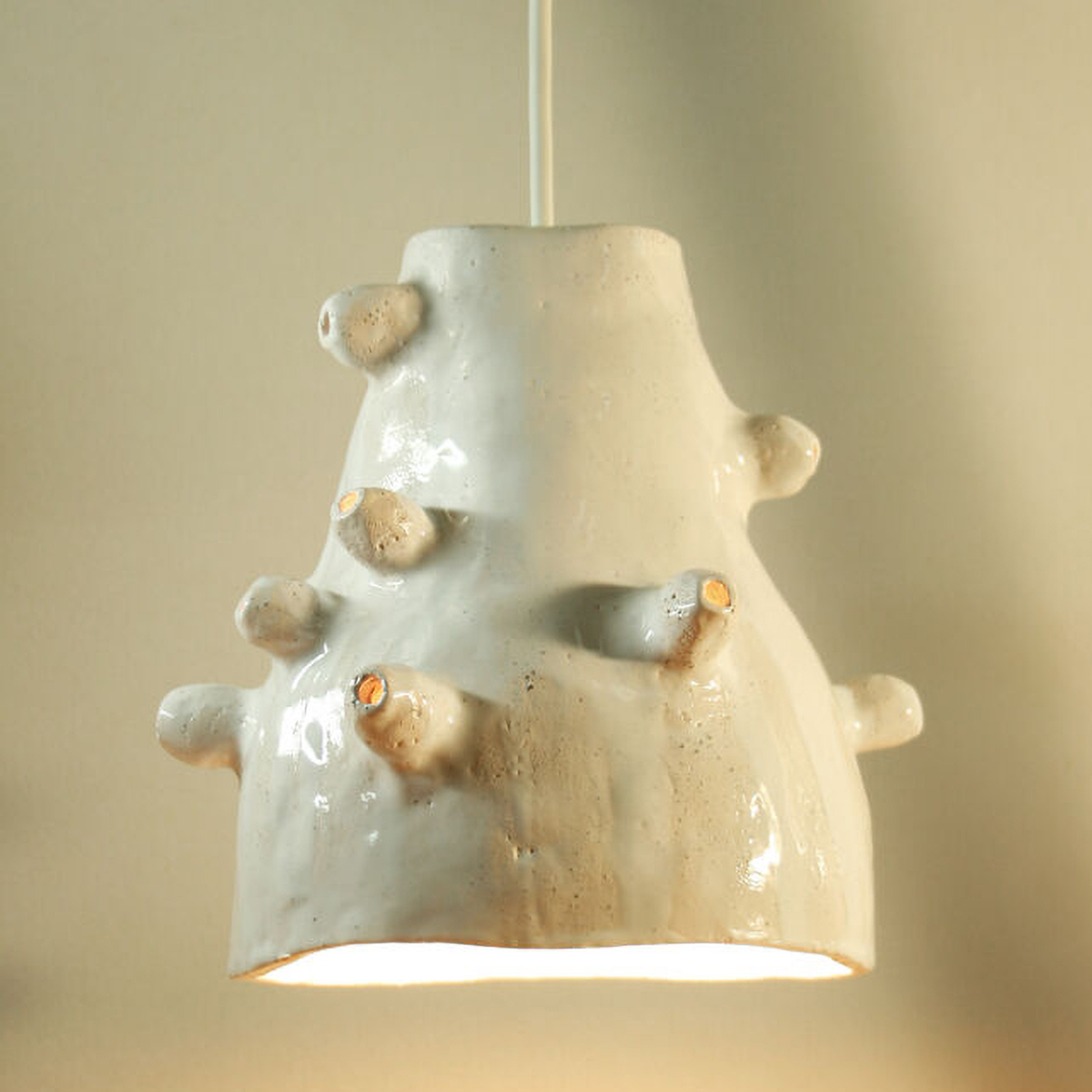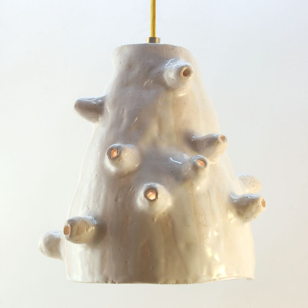 "LU - LU" это светильник из керамической коллекции. Выделяется характерными "желудятами", через которые проникает свет. Сверху покрыт несколькими неравномерными слоями глазури.