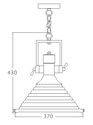 Его колоколоподобный плафон, выполненный из металла и подвешенный на металлическую цепочку, придает ему особую эстетику и оригинальность. Снизу светильника расположен плоский распределитель светового потока, сделанный из стекла, который добавляет ему блеска.