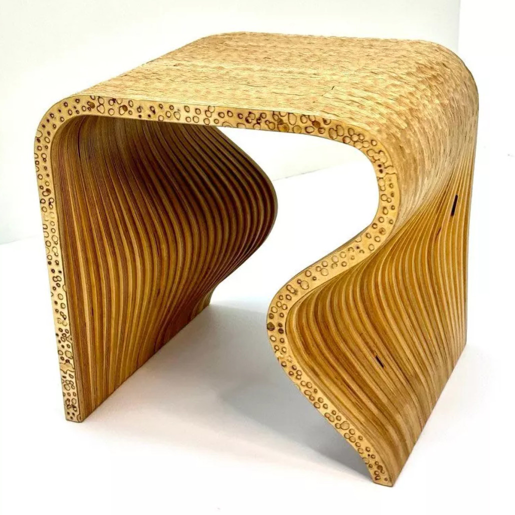 Табуретка из фанеры «FLEXIBLE» представляет собой образец параметрической мебели, сочетающей оригинальный дизайн и функциональность. Ее уникальные формы привлекают внимание и позволяют выделить интерьер. Изготавливаясь из качественного фанеры, табуретка обеспечивает надежность и долговечность. Легкий вес и компактные размеры делают ее удобной в использовании и транспортировке. «FLEXIBLE» легко адаптируется к различным стилям оформления, что делает ее универсальным решением для любого помещения, будь то жилое пространство, офис или кафе.