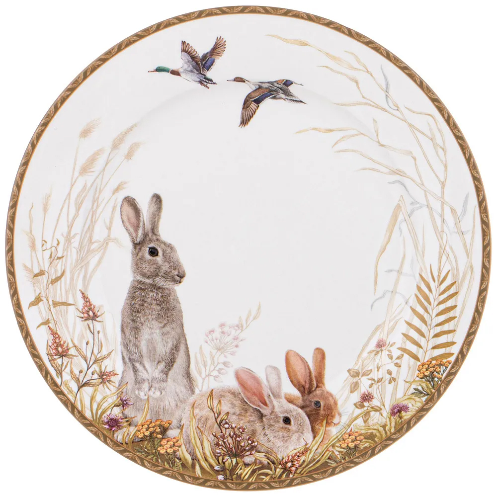 Тарелка закусочная из фарфора с изображением зайцев Hunting Porcelain Collection